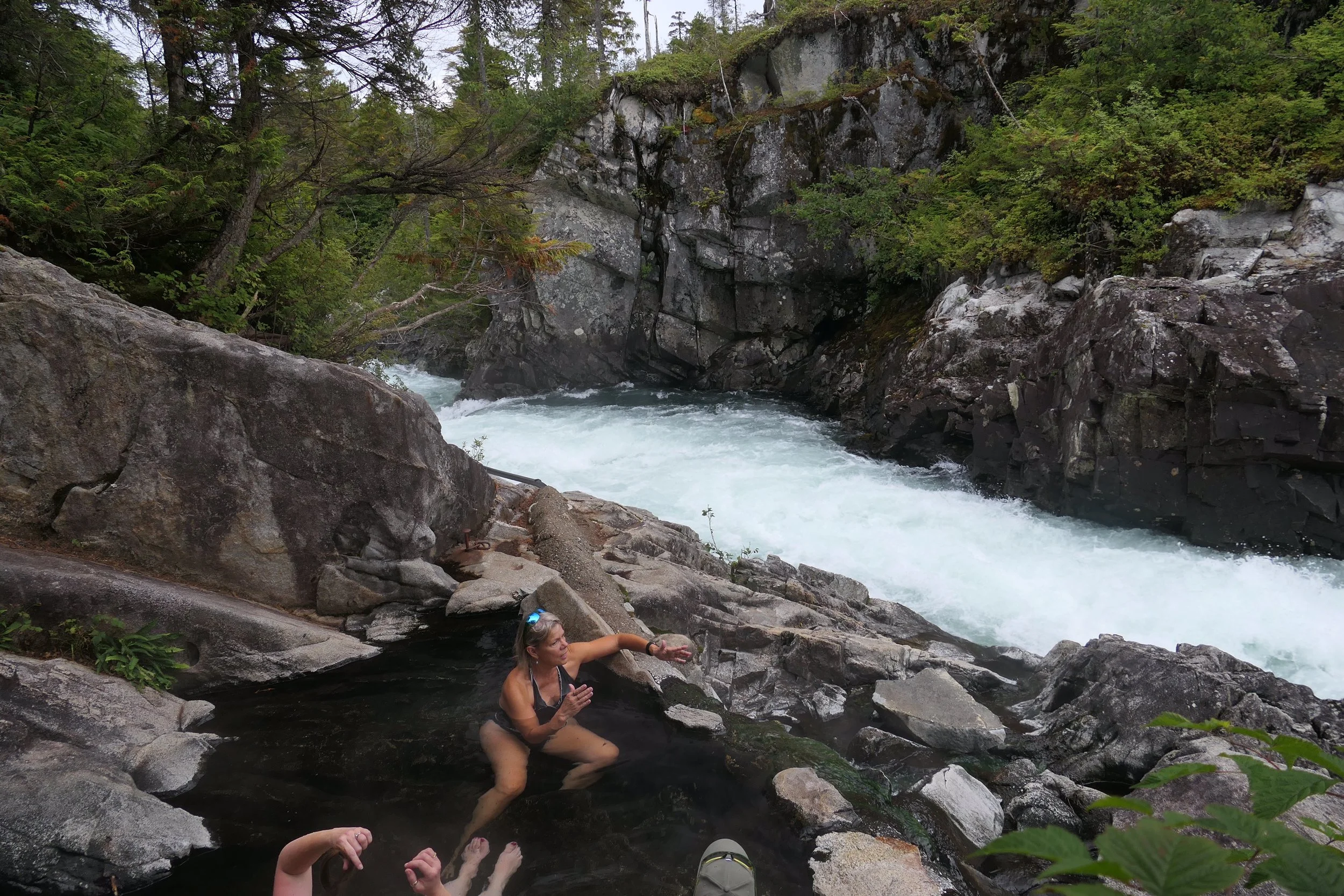 Experience a tour of working Salmon Hatchery followed by a hike that ends at riverside thermally heated hot springs. We anchor in Red Bluff Bay with the sounds of waterfalls in every direction.